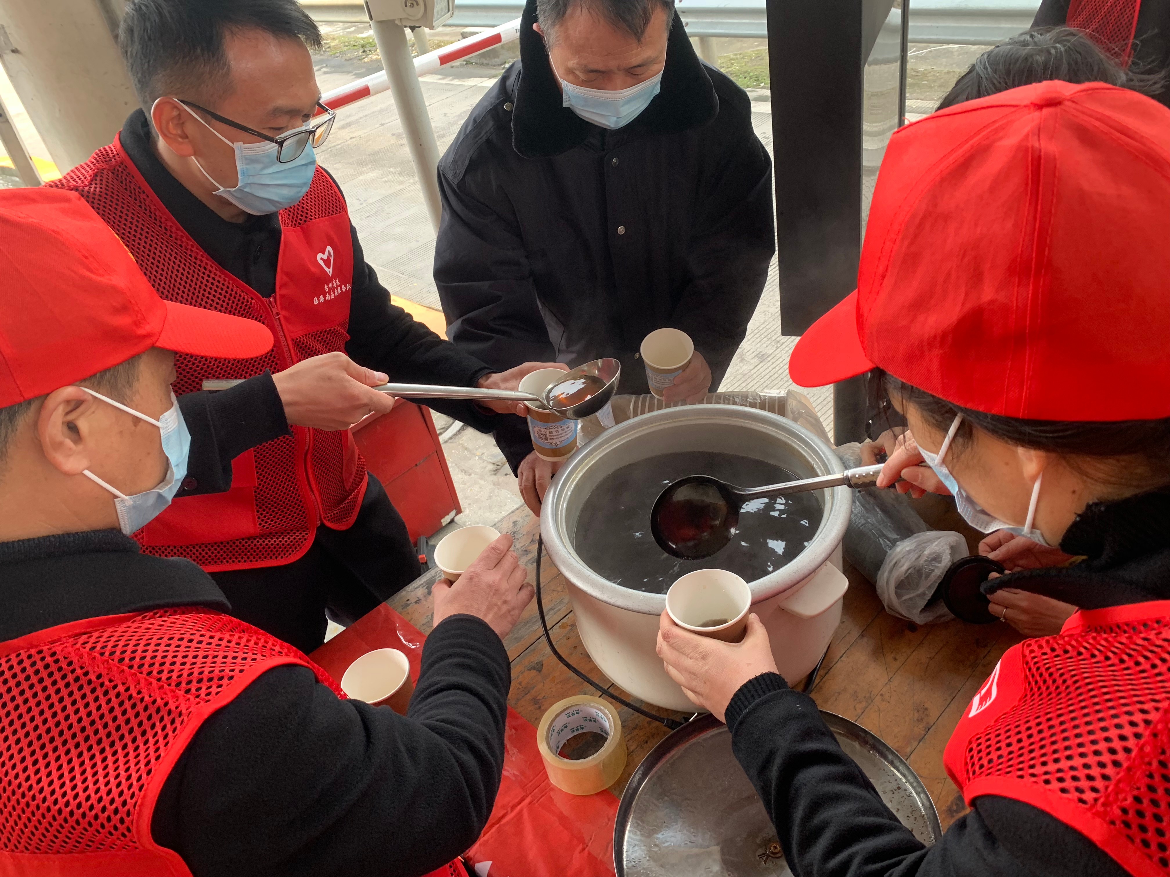 為了開展好本次活動,收費所黨支部提前一天就進(jìn)行了布置,力求在做好疫情防控的同時開展好志愿服務(wù)活動。 當(dāng)天上午,收費所食堂預(yù)先熬制好滿滿一大鍋紅棗姜茶,伴隨著鵝毛大雪,車道寒風(fēng)凜冽,但刺骨的寒風(fēng)擋不住志愿者們的似火熱情,大家身穿紅馬甲,面帶口罩,在搭好志愿服務(wù)臺后,有的負(fù)責(zé)用勺子把滾燙的茶水裝進(jìn)紙杯,有的負(fù)責(zé)蓋杯蓋,有的負(fù)責(zé)傳遞,有的負(fù)責(zé)把裝好茶水的杯子送給駕駛員,現(xiàn)場有序分工。熱情的服務(wù)贏得過往司乘人員的好評。