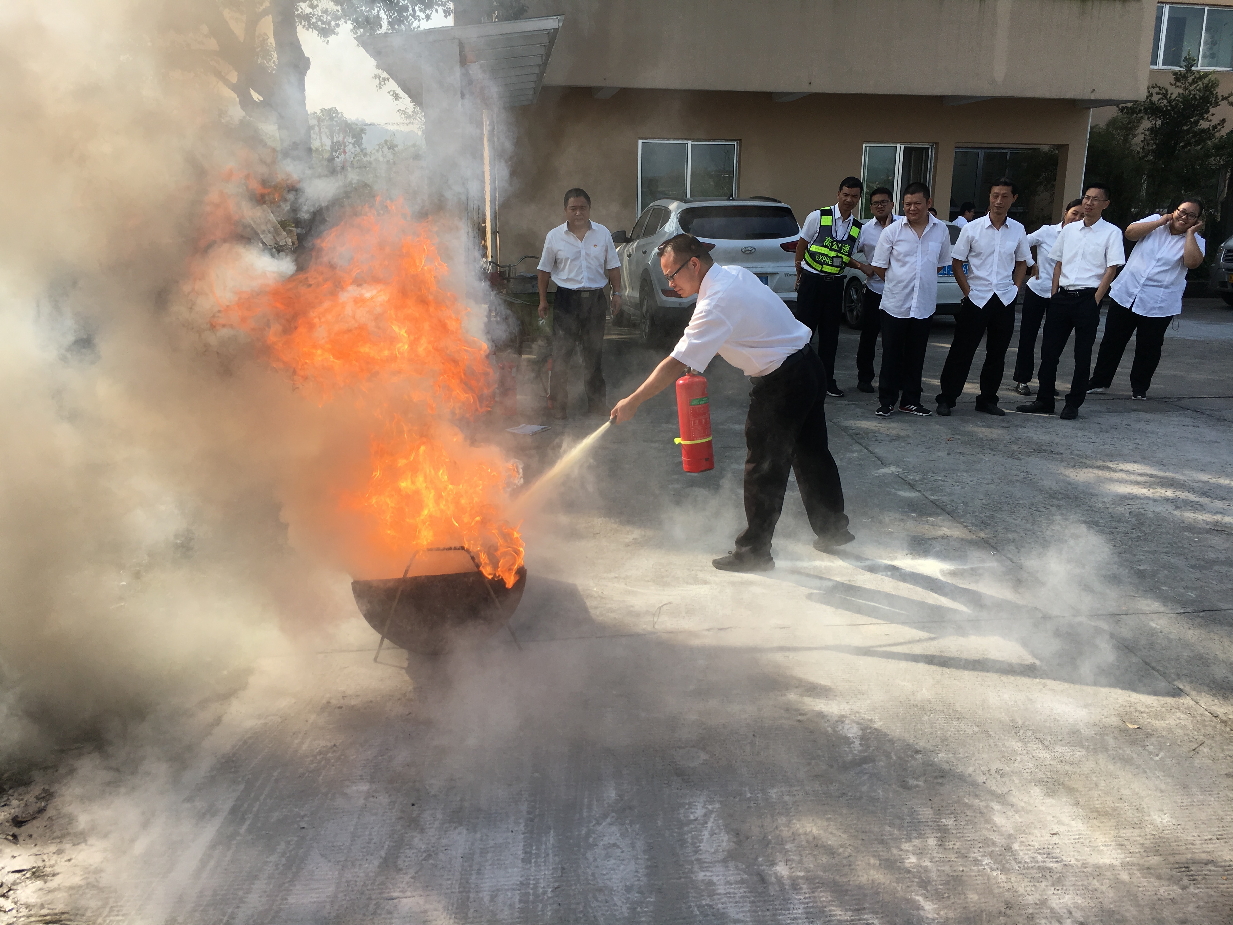 圖為演練現(xiàn)場 在接下去的滅火演練中,班長先行滅火示范,參加活動的員工逐個參與實際操作,所里的安全員在一旁進行指導(dǎo)、糾正,保證更有效地發(fā)揮消防器材的作用。 此次培訓(xùn)進一步鞏固了員工的消防常識,提升了安全意識及碰到火災(zāi)時的應(yīng)急處置能力,培養(yǎng)“防火安全無小事,時時處處需留心”的好習(xí)慣,更好地保障工作、生活環(huán)境的安全。 夏蓮萍