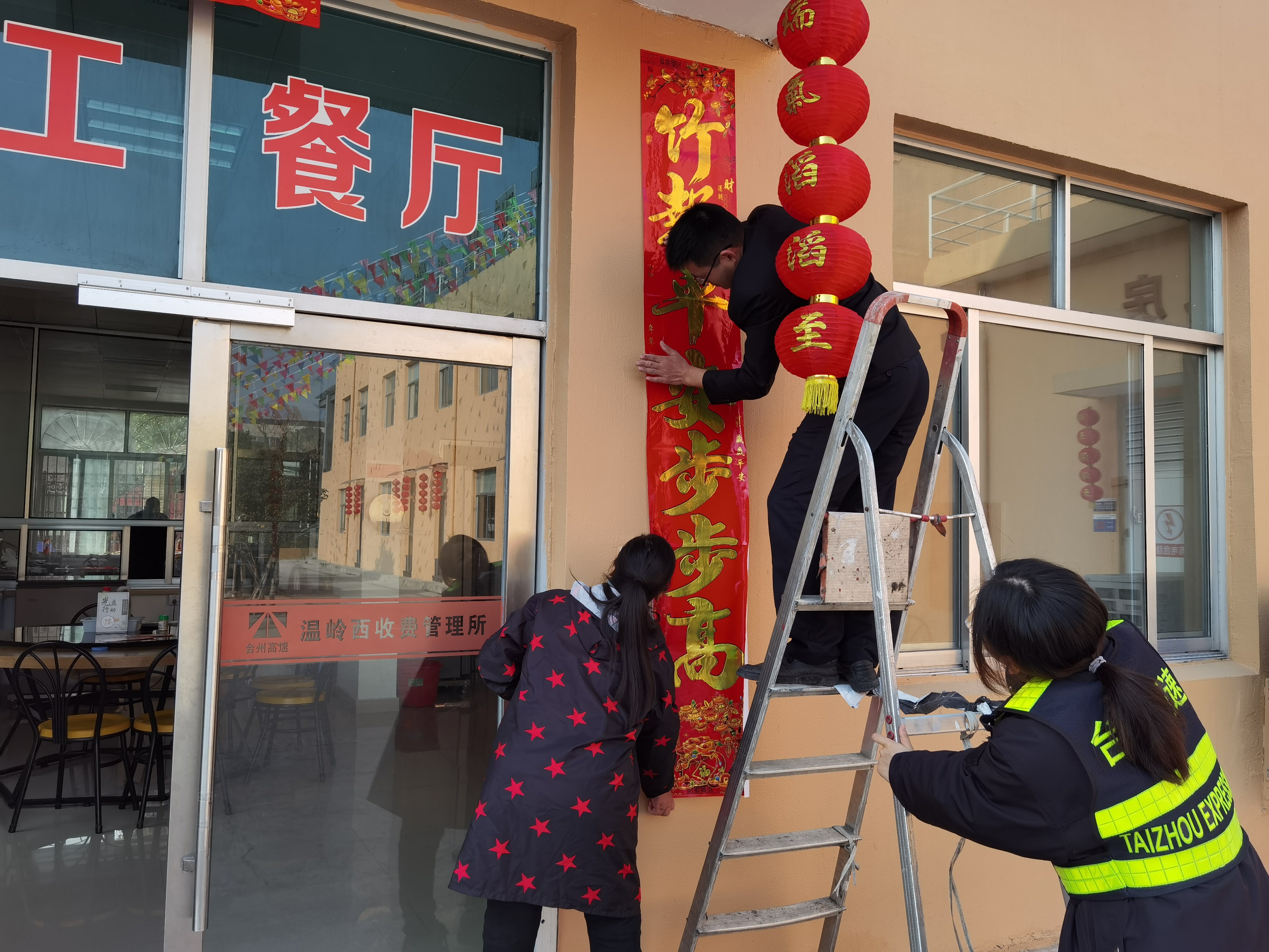 “爆竹聲中一歲除,春風(fēng)送暖入屠蘇。千門萬戶曈曈日,總把新桃換舊符。”時(shí)值2021年春節(jié)來臨之際,為營造歡樂喜慶、祥和溫馨的節(jié)日氛圍,溫嶺西收費(fèi)所組織職工對(duì)站區(qū)進(jìn)行布置,掛燈籠、貼對(duì)聯(lián),歡歡喜喜迎新年。