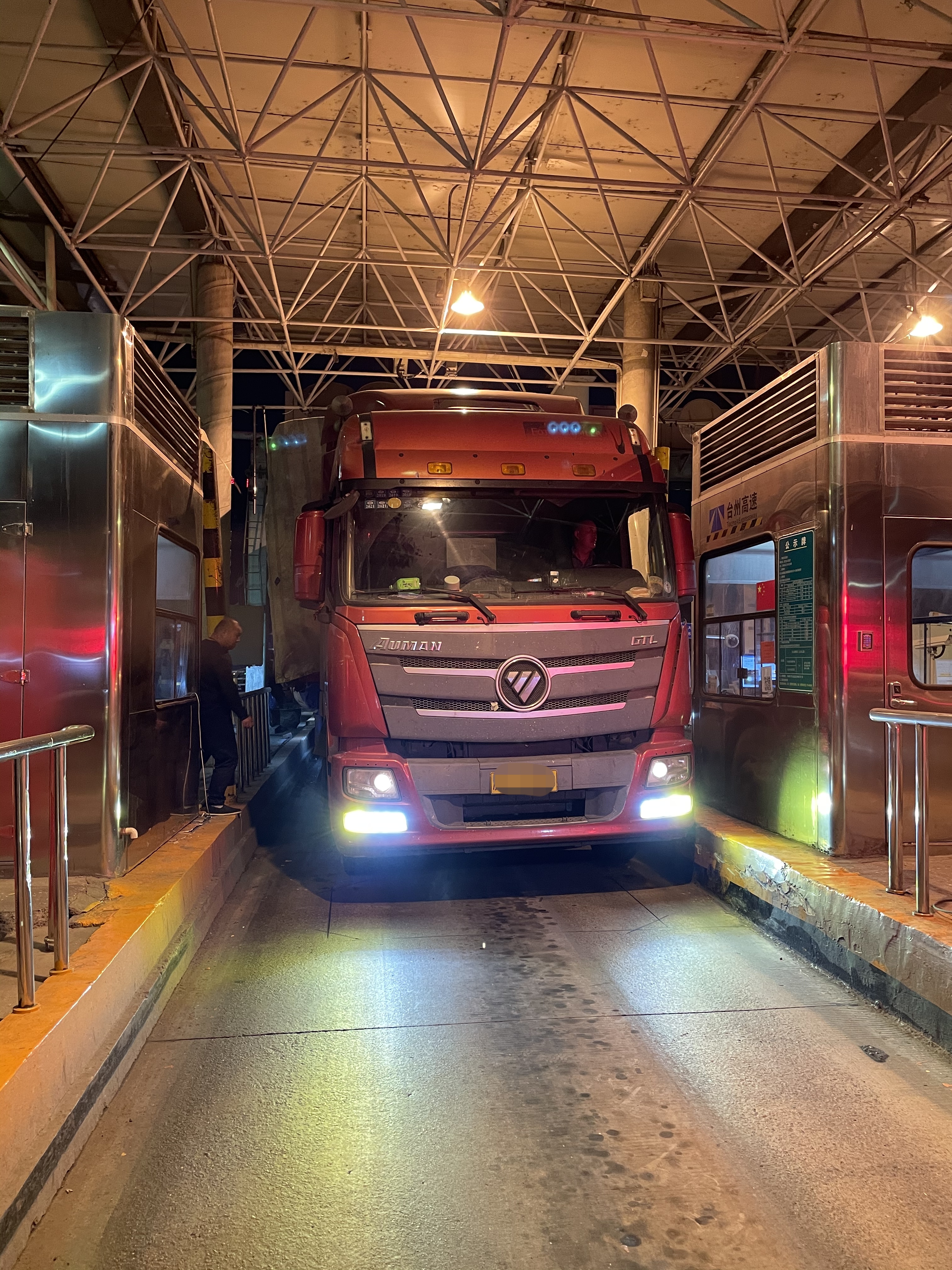 夜幕下的溫嶺西收費(fèi)站入口,繁忙而有序,大貨車一輛接著一輛,對于超限車輛也在有序勸返當(dāng)中。這時(shí),一輛運(yùn)輸廢木板的車輛蓋著篷布飛快地駛?cè)?/span>9號車道,不過該車已進(jìn)入勸返人員的密切關(guān)注之中,坐崗人員林華平也已做好了對該車勸返的準(zhǔn)備。