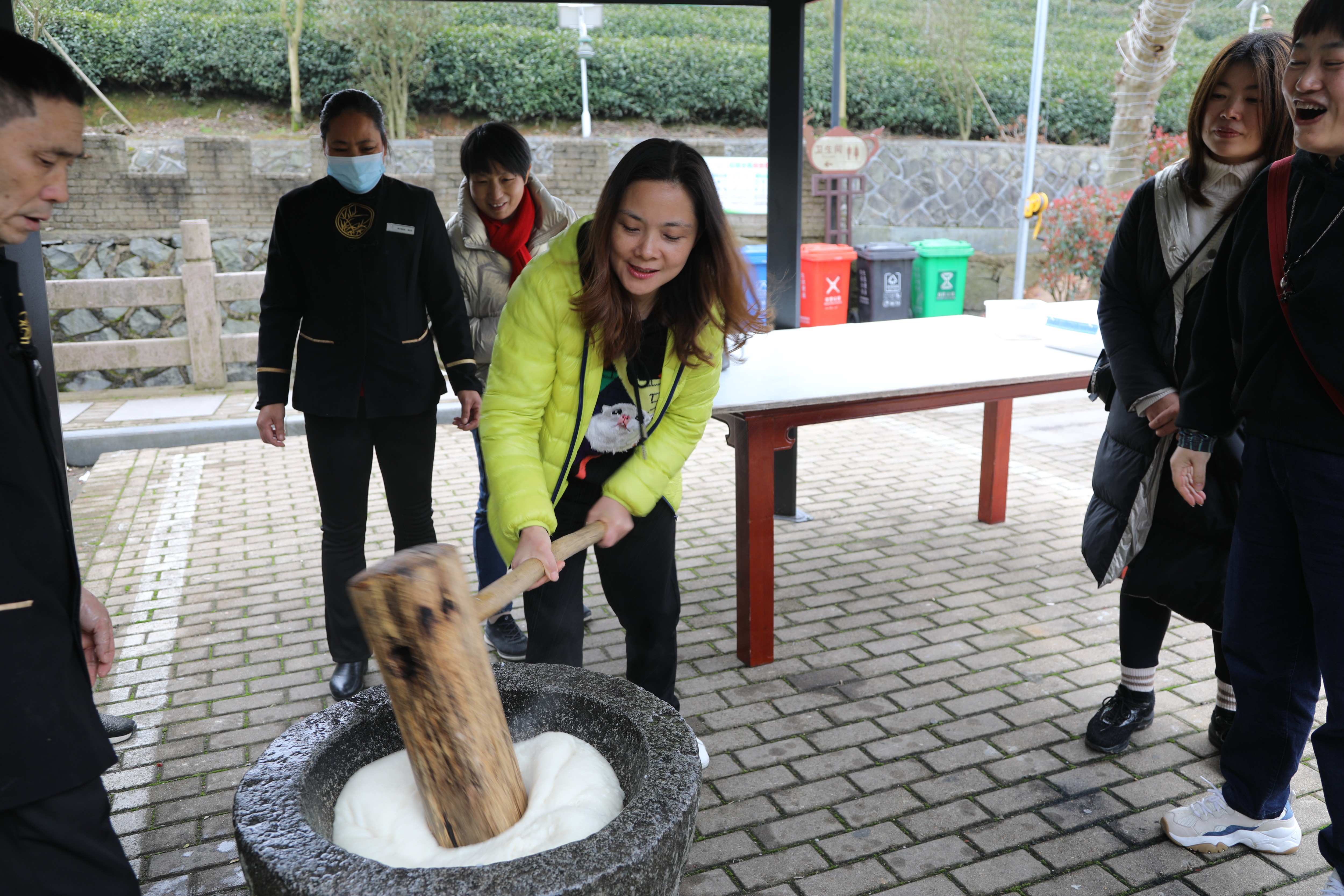 “一、二、三,一、二、三……”飯后,女同胞們體驗傳統(tǒng)“搗麻糍”,圍著石臼從上往下用力錘。搗麻糍,捏麻糍,嘗麻糍……大家邊聊天邊制作麻糍,氣氛其樂融融。 此次活動不僅豐富了女職工的業(yè)余生活,緩解了緊張繁忙的工作壓力,更重要的是促進了友誼,加深了感情,使各位女職工充分感受到了節(jié)日帶來的喜悅和快樂,最大限度地提高女職工的幸福感,激勵大家以更加飽滿的熱情、最佳的狀態(tài)投入工作,更好地發(fā)揮“半邊天”作用,為公司發(fā)展和建設做出更大的貢獻。 曾莉莉