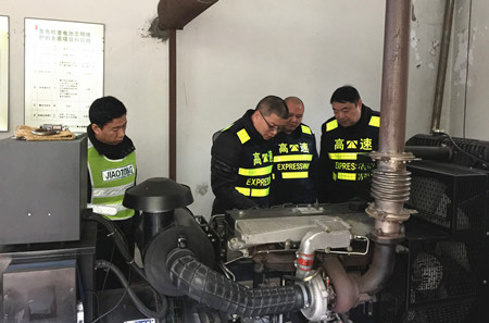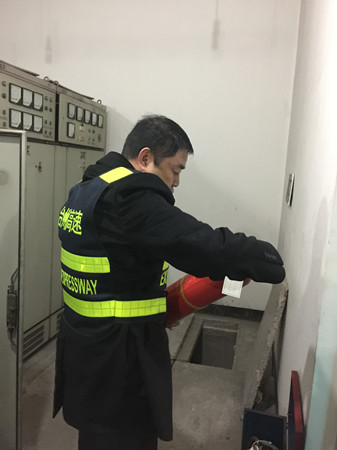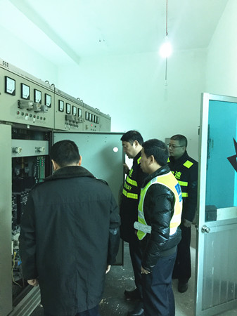 圖為檢查員在檢查配電房用電設(shè)備 檢查人員本著“防范在先、警惕在前”的原則,重點檢查了供配電房的供電設(shè)備運行狀況和消防設(shè)施。在供配電房,大家對環(huán)境衛(wèi)生、發(fā)電機組的機油油位、電柴油儲備量、水箱水位等逐一進行檢查,并當(dāng)場啟動發(fā)電機組,查看是否能夠有效運行,并仔細(xì)檢查了消防設(shè)施生產(chǎn)日期、日常巡查記錄,消防水池儲存水量是否充足等,確保能夠正常使用。