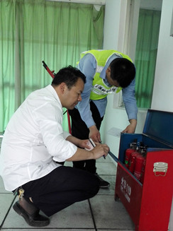 圖為檢查現(xiàn)場 該所副所長應(yīng)錦清帶領(lǐng)隊(duì)員仔細(xì)檢查了南北配電房的機(jī)電設(shè)施,隨后對(duì)管理房的干粉滅火器、隧道內(nèi)的泡沫滅火器,配電房、中控室的二氧化碳滅火器進(jìn)行逐一檢查,查看每個(gè)滅火器的壓力值、出氣管有無彎折、堵塞、損傷,壓把和閥體等金屬件有無變形和銹蝕,是否還在使用年限之內(nèi)等等,并做好相應(yīng)的檢查記錄。  陳智慧 |