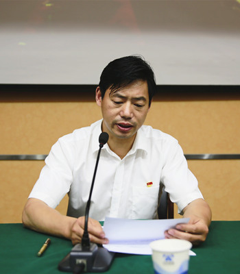 圖為黨群部主任傳達相關(guān)文件精神