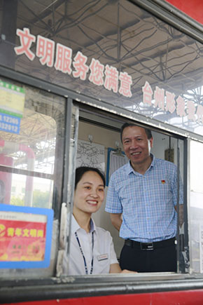 “今天車流量多嗎?你們是公司形象的代表,請把最優(yōu)質(zhì)的服務(wù)提供給他們。”在臺州收費(fèi)所一號崗?fù)だ铮瑥埥ㄆ揭贿呂繂柈?dāng)班收費(fèi)員,囑咐他們注意安全和休息,一邊鼓勵他們堅(jiān)持做好文明服務(wù)。他還到黃土嶺隧道所、臨海南收費(fèi)所慰問當(dāng)班執(zhí)勤隊(duì)員和收費(fèi)員。此時,各所食堂管理房正處于改造階段,他仔細(xì)查看了各所食堂和工作場所,了解大家的飲食和工作環(huán)境。