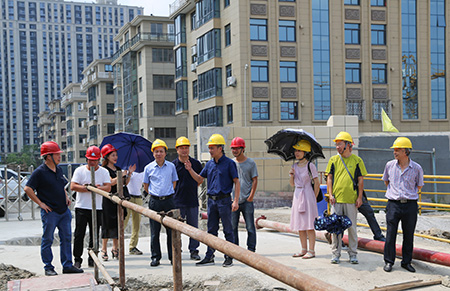圖為集團(tuán)副董事長、總經(jīng)理張建平在文鼎苑項(xiàng)目工地了解工程進(jìn)度情況