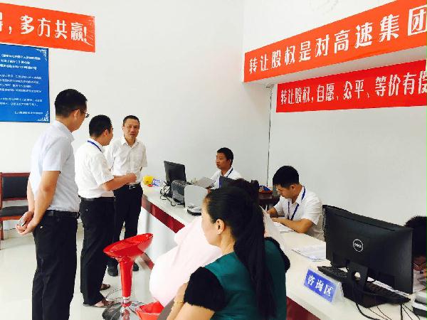 圖為集團(tuán)副董事長、總經(jīng)理張建平在天臺(tái)收購點(diǎn)詳細(xì)詢問收購工作具體開展情況 張建平向各地方政府前期對(duì)公司股權(quán)收購工作的支持表示感謝,他介紹了當(dāng)?shù)嘏_(tái)州高速股權(quán)收購進(jìn)展情況,同時(shí)闡明收購工作中存在的困難,需要地方政府繼續(xù)對(duì)我們的工作給予支持和幫助。三地政府都表示一定會(huì)全力支持這項(xiàng)工作。仙居縣分管公司股權(quán)收購的常務(wù)副縣長說,“放心吧,我們一起想辦法,先從持股較多的法人股入手,再化大力氣做小股東工作,一定會(huì)圓滿完成任務(wù)。” 張建平一行先后來到三地股權(quán)收購點(diǎn),向收購一線的工作人員表示親切的問候。張建平對(duì)大家的工作給予肯定,感謝所有人勤勤懇懇,無私付出,并希望大家繼續(xù)努力,共同實(shí)現(xiàn)目標(biāo)。工作人員詳細(xì)介紹了日常具體工作方法,他們緊跟公司股權(quán)收購總體布局,并結(jié)合當(dāng)?shù)靥厥馇闆r,因地制宜,有序靈活地開展股權(quán)收購工作。
