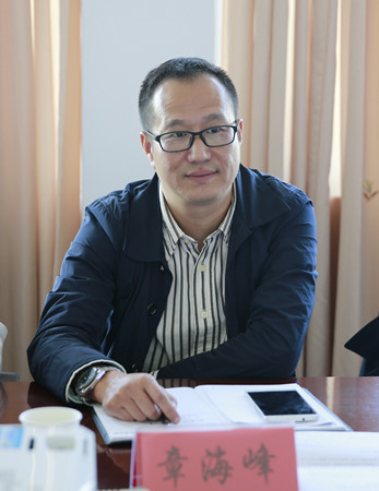圖為集團(tuán)副總經(jīng)理章海峰在座談會(huì)上與訪客交流