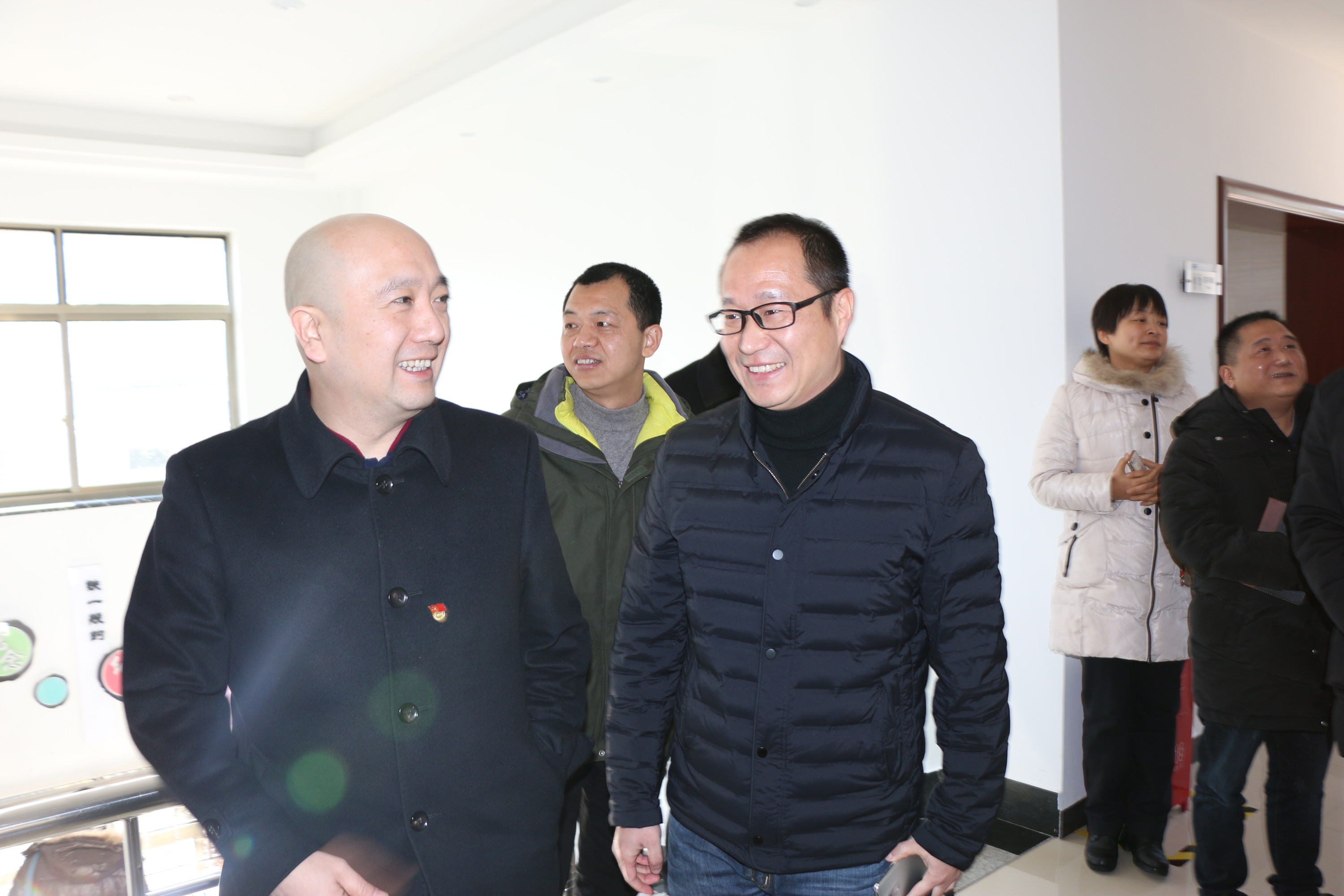圖為集團(tuán)副總經(jīng)理章海峰帶領(lǐng)考察組參觀上墻黨建文化