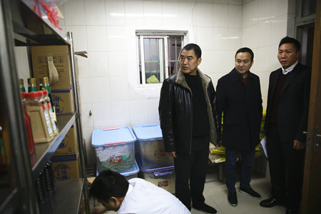 圖為集團(tuán)副總經(jīng)理羅小將帶隊(duì)檢查集團(tuán)大樓食堂