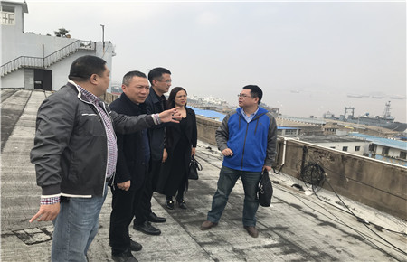 圖為張建平一行人在新碼頭建址考察 會(huì)后,在海門(mén)港埠總公司總經(jīng)理王宏濤的陪同下,張建平一行人分別實(shí)地考察了新、舊碼頭現(xiàn)場(chǎng)。 顧維安