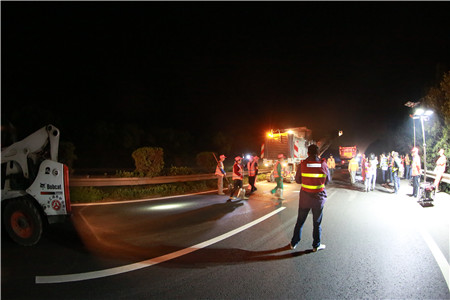反復(fù)溝通,施工保質(zhì)保進(jìn)度。要在車流量極大的主干線上夜間順利施工,不僅對(duì)工程質(zhì)量、進(jìn)度負(fù)責(zé),更要對(duì)安全保暢負(fù)責(zé),不能有半點(diǎn)疏忽,不允許絲毫麻痹,而且涉及面極廣。不僅涉及工程部與施工監(jiān)理單位,更涉及到高速交警、路政及運(yùn)營(yíng)管理等多個(gè)部門,前期工程部協(xié)交警、營(yíng)運(yùn)部、監(jiān)理、施工等各相關(guān)單位就施工方案反復(fù)論證,一次次的討論與交流,計(jì)劃改了又改,從提前發(fā)布公告到路口設(shè)立標(biāo)志,從預(yù)警車輛安排到分流時(shí)間節(jié)點(diǎn),從搶險(xiǎn)預(yù)案到應(yīng)急小分隊(duì)建立,路面的反復(fù)測(cè)量,綠化養(yǎng)護(hù)的同期推進(jìn).....千頭萬(wàn)緒,在于每一個(gè)細(xì)節(jié)的反復(fù)論證。一直到11號(hào)下午,確定了最合理有效的交通組織方案,施工前的安全和技術(shù)方面有了最后的交底,器械設(shè)備、材料、人員班組配備等一一清點(diǎn)得到最終確認(rèn)。