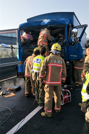 控制好現場以后,消防人員利用擴張器展開救援,但是成效并不明顯。7點左右,救護車已然到達現場,但是駕駛員依舊卡在車中。為保障駕駛員生命安全,消防人員并未進行強行拆除,而是召喚了一輛帶有氣泵設備的專業(yè)消防車趕往現場,利用氣泵剪進行破拆,經過眾人的努力,終于將臉上鮮血直流的駕駛員成功救出,并送上救護車。7點30分,救護車與消防人員撤離現場,施救中心人員進行善后工作,并將事故車輛拖離現場。8時許,高速恢復通行。