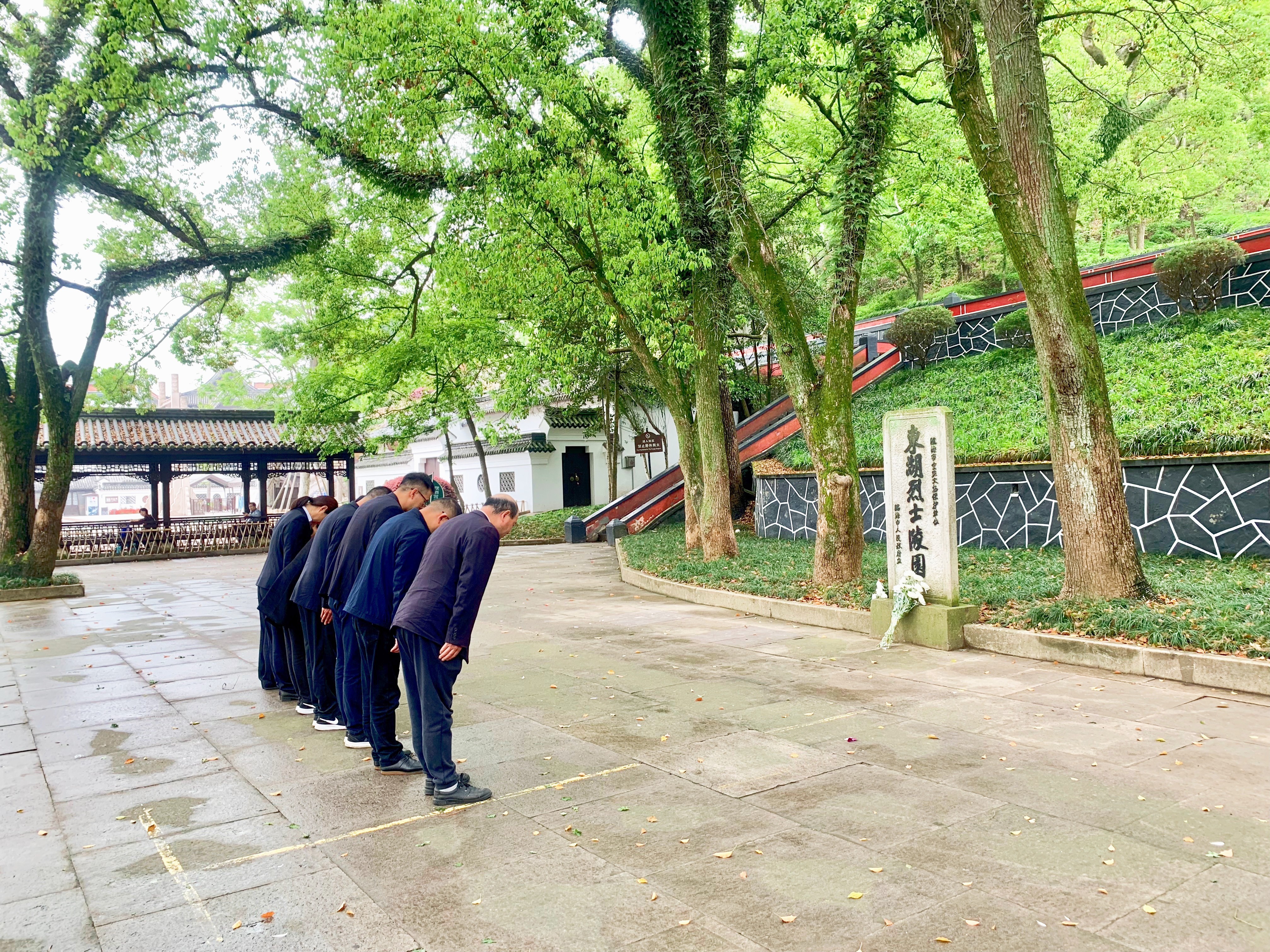 臨海市東湖烈士陵園,大雨過后,松柏蔥郁,紀(jì)念牌在雨水的洗禮下顯得格外莊嚴(yán)肅穆。祭奠現(xiàn)場,該所副所長盧祖理介紹了長眠于此的英雄們的光榮事跡,全體人員敬獻鮮花、集體鞠躬、低頭默哀,黨員同志面朝黨旗和紀(jì)念碑重溫入黨誓詞,深切緬懷革命先烈為民族獨立、國家富強和人民幸福做出的奉獻與犧牲。 4月2日上午,溫嶺西收費所黨支部聯(lián)合臺州南收費所、大溪嶺隧道所黨支部,組織30余名干部職工在臨海市東湖烈士陵園舉行祭掃活動。