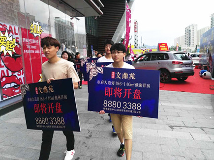 圖為文鼎苑銷售部人員在商場內(nèi)開展宣傳活動 在活動現(xiàn)場,參加人員一邊做陶藝,一邊詢問樓盤詳細(xì)情況,氣氛十分熱烈。同一時間,在萬達(dá)廣場和銀泰商場內(nèi),文鼎苑銷售部的帥哥美女們手持樓盤開盤廣告宣傳牌,他們一個個面帶笑容、朝氣蓬勃、專業(yè)細(xì)致地為前來咨詢的客戶講解樓盤的具體情況。宣傳隊(duì)伍所到之處,吸引了大批客戶的關(guān)注。 以上活動是文鼎苑項(xiàng)目首批開盤前期營銷推廣中的其中一個環(huán)節(jié)。為營造良好的銷售氛圍,在前期,仁和公司通過大型戶外廣告、微信公眾號實(shí)時更新、新聞媒介重點(diǎn)發(fā)布等,陸續(xù)進(jìn)行多方位媒體宣傳攻勢。同時,謀劃舉辦了“文鼎苑家風(fēng)征集活動”、立夏、母親節(jié)、“520與愛相約”、端午節(jié)、兒童節(jié)等節(jié)假日專題宣傳活動。此外,還安排了銷售人員在周末深入椒江拆遷區(qū)進(jìn)行拓客派單活動。 目前,高速房產(chǎn)集團(tuán)的員工們正戮力同心,奮力拼搏,為全力打響文鼎苑首期開盤炮而努力奮戰(zhàn)。 包啟曉