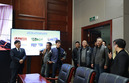 圖為考察組在市應(yīng)急指揮中心會(huì)商室觀摩