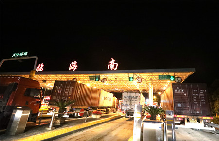 圖為臨海南收費(fèi)所貨車通行場(chǎng)面