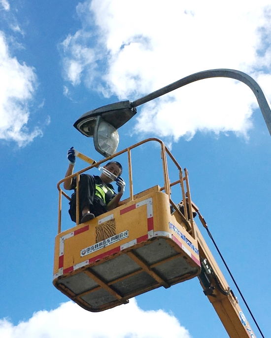 “我動作快而且都已經(jīng)在上面了,換來換去又要浪費不少時間,早點修好早點恢復通車。”當完成第一盞路燈,大家都勸他下來再換個人時,被他婉拒了......