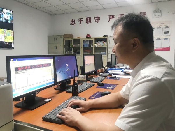 在工作時,杜廣勝時不時抬頭看著屏幕,觀察著每一個監(jiān)控視頻的動態(tài)。雖然他在監(jiān)控崗位上只有短短的兩年,但每當(dāng)遇到突發(fā)事件,總能做到處理得當(dāng)、及時上傳下達、保障信息暢通。