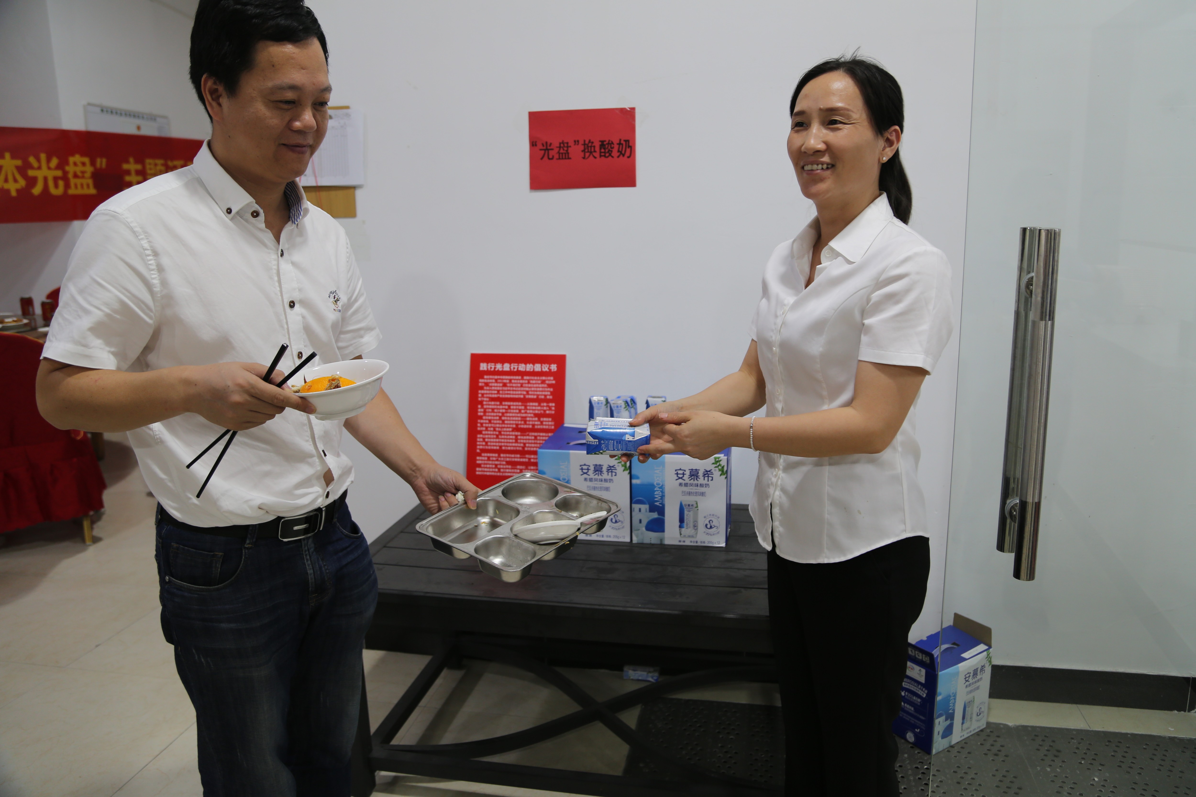 餐后,公司為倡導(dǎo)員工愛惜糧食,鼓勵員工積極光盤,實(shí)行“光盤獎勵”,每一位員工憑光盤可以兌換酸奶一瓶,借此小獎勵,倡導(dǎo)文明新風(fēng)尚,以“光盤”為榮,以“剩宴”為恥。                                         盧丹麗